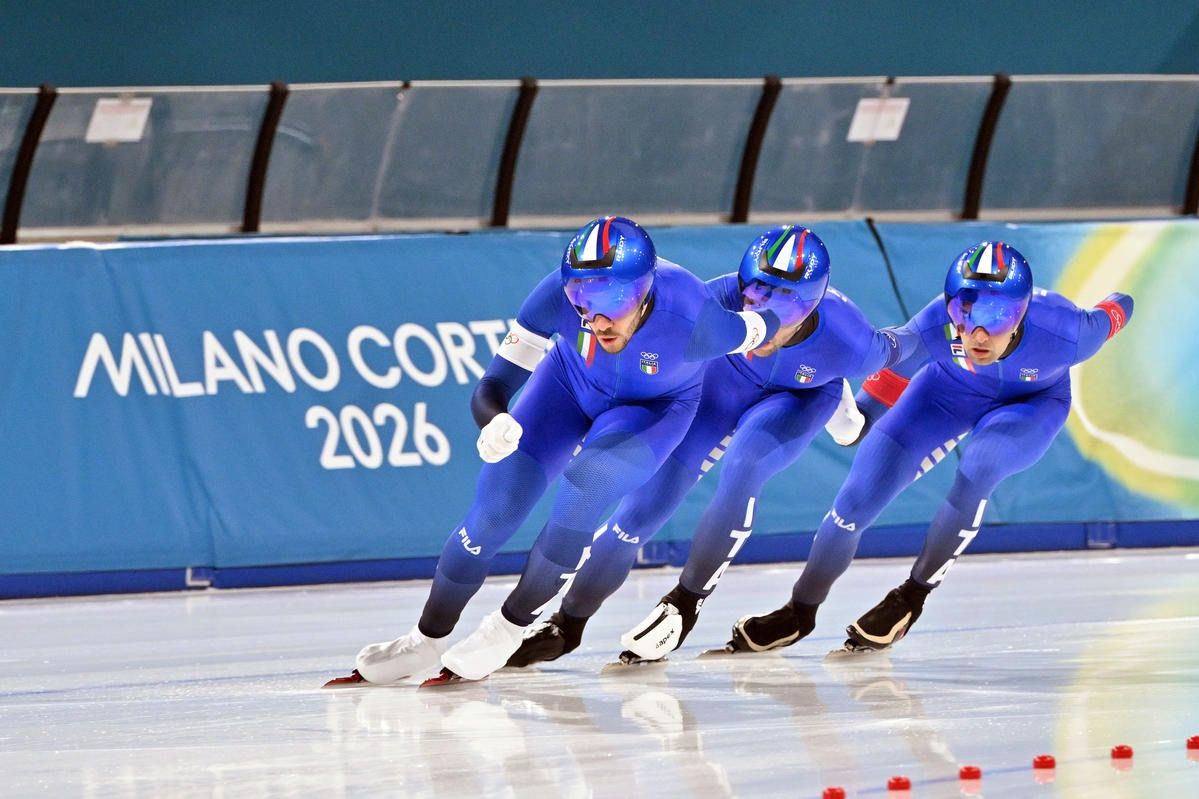 La Nazionale di speed skating pattina nuovamente nell’oro ai Giochi Olimpici di Milano Cortina 2026. Dopo lo storico doppio trionfo individuale targato Francesca Lollobrigida (3.000 metri e 5.000 metri), infatti, l’anello di ghiaccio del Milano Ice Park ha fatto da cornice alla memorabile impresa del terzetto composto da Davide Ghiotto, Andrea Giovannini e Michele Malfatti (foto Ferdinando Mezzelani/CONI), che ha conquistato il successo nell’inseguimento a squadre maschile. Una vittoria che per l’Italia nell'ambito olimpico mancava all’appello addirittura da 20 anni, quando Enrico Fabris, Ippolito Sanfratello, Matteo Anesi e Stefano Donagrandi alzarono le braccia al cielo in occasione dell’ultima edizione casalinga di Torino 2006. Si tratta della 24ª medaglia (nove ori, quattro argenti ed 11 bronzi) per l’Italia Team a Milano Cortina.